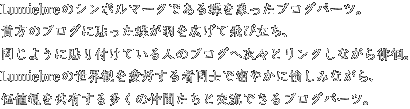 <div id="_lumiebre_blogparts"><script src="http://www.lumiebre.jp/blogparts/blogparts.cgi" type="text/javascript"></script></div>